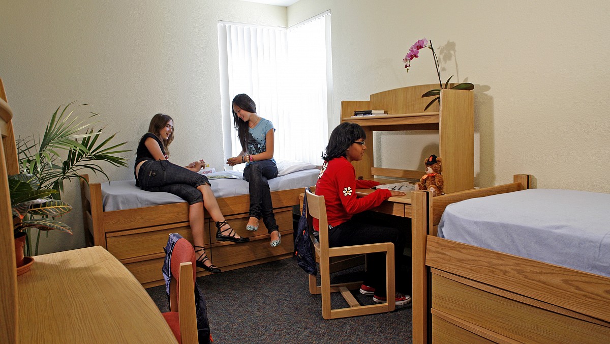 Tu logeras dans une résidence qui se trouve à proximité des salles de classe. Tu partageras ta chambre avec un-e autre étudiant-e.